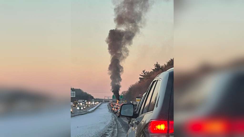 Massive Car Fire Snarls Traffic On I 93 North Boston News Weather Sports Whdh 7news